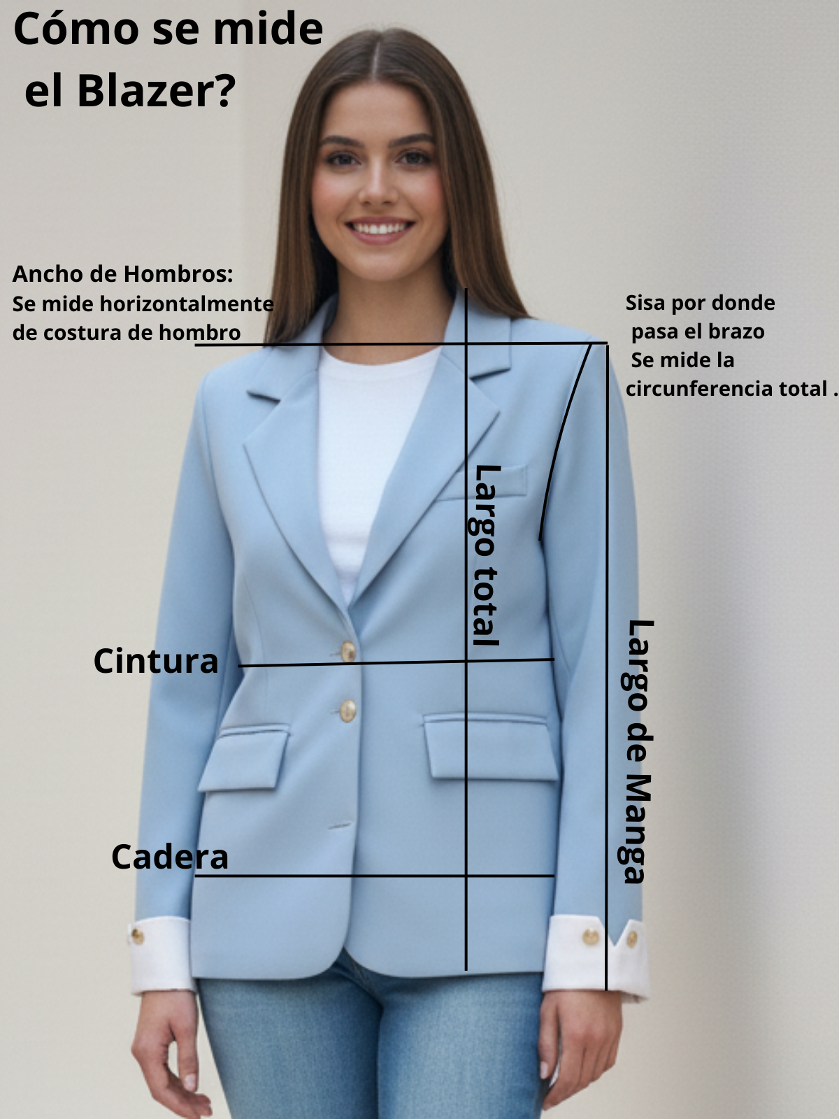 Este Blazer sastrero redefine la elegancia clásica con un toque moderno. Confeccionado en una tela suave y estructurada, ofrece un calce que realza la silueta sin perder comodidad. Su diseño incluye solapas amplias, bolsillos con tapa y botones dorados -un detalle que no pasa desapercibido y que hoy marca tendencia en la moda- aportando un aire sofisticado y femenino. Las mangas finalizan con un delicado puño blanco que se destaca por sus botones decorativos, elevando aún más el diseño.