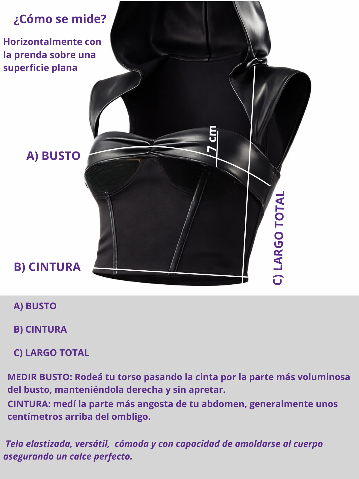 Corset confeccionado en lycra elastizada y simil cuero