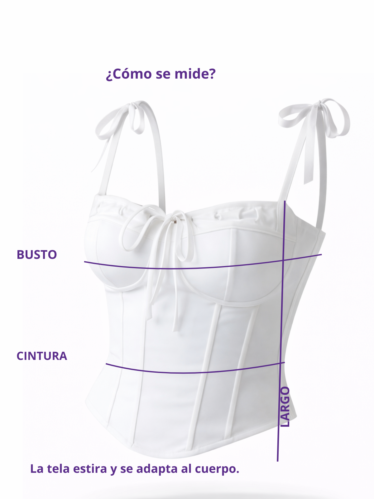 Minimalista, versátil y ultra favorecedor. Este corset Blanca elastizado está diseñado para realzar tu silueta con un calce cómodo y adaptable que se ajusta a tu cuerpo como un guante. Su estructura con costuras marcadas estiliza la figura, mientras que el escote recto con frunces regulables y entrelazado frontal te permite adaptarlo a tu gusto, logrando más o menos abertura según el look que quieras crear.
