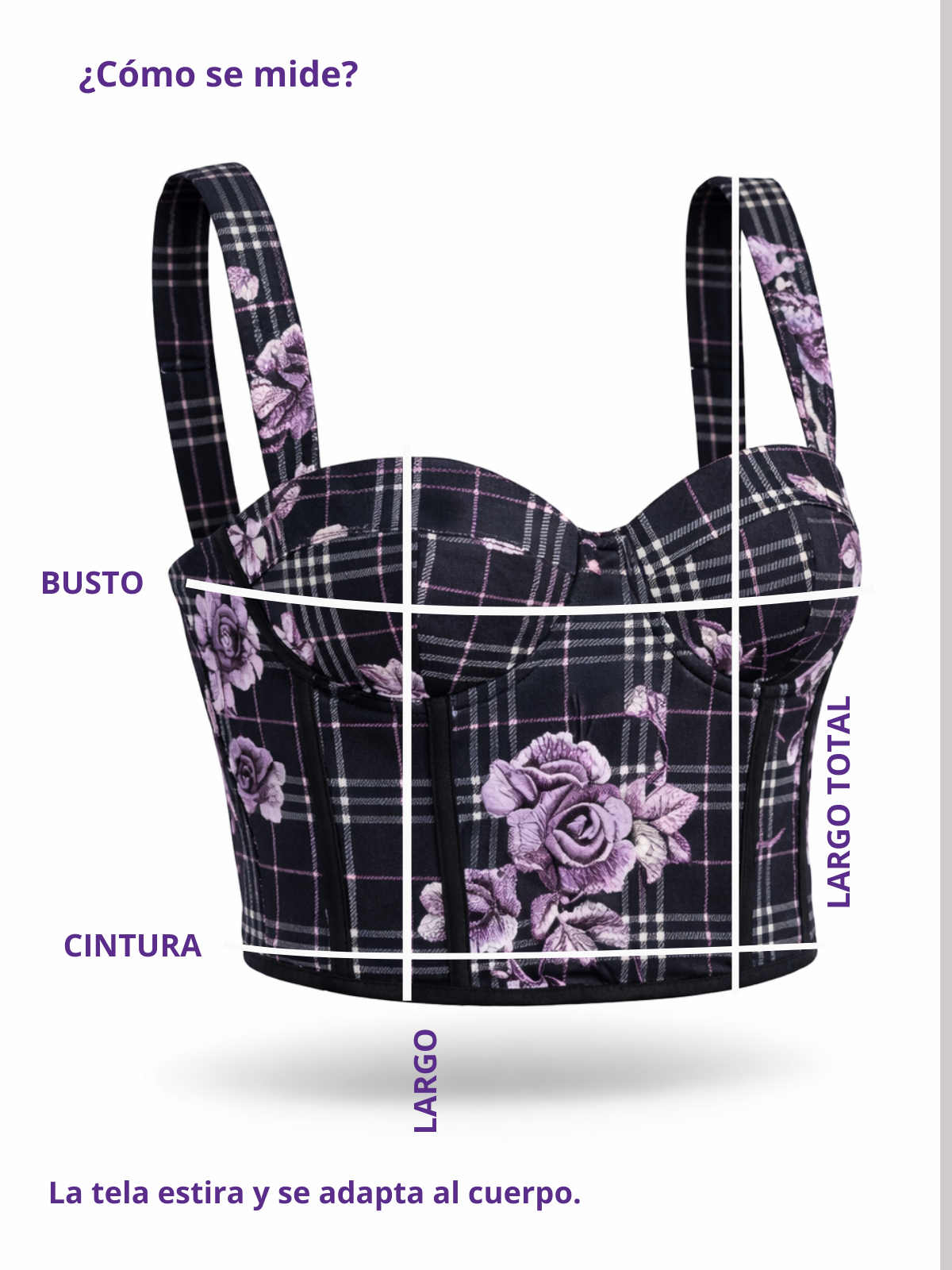 Destacá tu estilo con este corset Giovanna que combina fuerza y feminidad en una sola prenda. Su diseño fusiona el clásico estampado a cuadros escocés en tonos oscuros con delicados motivos florales en tonos neutros, creando un contraste moderno, sofisticado y súper versátil. El calce entallado realza la silueta de forma natural, mientras que las varillas suaves brindan estructura y definición sin resignar comodidad.
