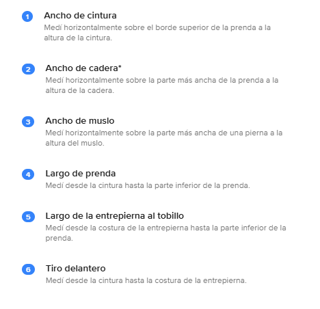 Guía de talles: