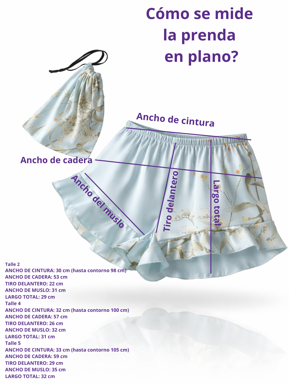 Es un short pijama confeccionado en satén suave, liviano y fresco, ideal para dormir o estar cómoda en casa. Los volados aportan una caída fluida y un toque femenino, ideal para dormir cómoda y sentirte linda.